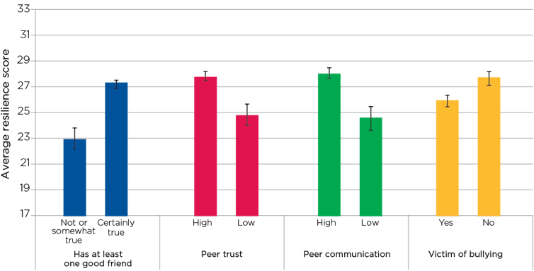 high levels of trust in their friends — average resilience scores were three points higher than for those with low levels of trust
