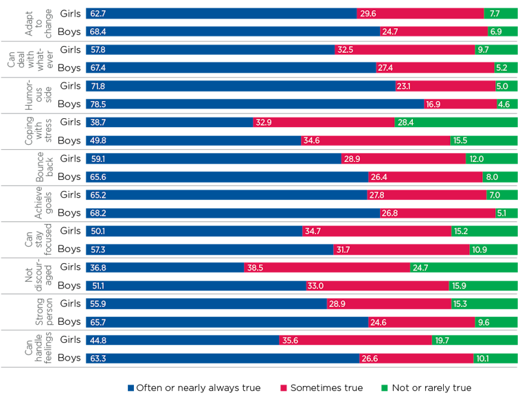 50% of boys and 39% of girls responded “often or nearly always true” to the statement “coping with stress can strengthen me”